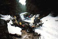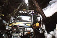 Ranní jasné nebe nám dodává vzpruhu spolu s vidinou nezasněžené cesty , kterou máme nadosah . Prvních 300 m bez problémů , dalších 200m systém zpátečka a vpřed posledních 100 m úzký úvoz 30 boční náklon 28 klesání na konci 60 m navátého sněhu o výšce 1 metru a cesta končící zasněženým potokem. Zastavujeme a rozdělujeme se do dvou skupin jedna dvoučlenná skupina vyráží pěšky prozkoumat potok , my čtyři se snažíme vycouvat s vozy zpět , což je do daného kopce v úvozu, kde se nedá otočit nemožné a vozy se propadají sněhem stále hlouběji, až do bláta. Přichází ke slovu naviják WARM 9000, u něhož už po několikáté oceňujeme Mouting Systém , který umožňuje přendat naviják ze předu do zadu a naopak , tak jak momentálně potřebujeme. Opět slyšíme charakteristický zvuk navijáku, který se snaží pomoci vozům ven z pasti a to protažením za stromy přes kladku , která uvázaná kurtopu za strom znásobuje sílu tahu .Nejprve je nutno vytáhnout poslední Suzuku tak o 10 m pak uprostřed stojící krátkou 70 desátku a nakonec první Hilux , znovu převázat všechny vozy a zpět dokola , posunout vozy o 60 m znamenalo provést šestkrát kolotoč a trvalo to 5 hodin , nakonec dorazil průzkum s tím , že když se dostaneme zpět na salaš kde jsme přenocovali jediné cesta je jet zpět, jak jsme přijeli , nebo varianta potok , kde nás čeká 2 km brodění horským potokem plným kamení, asi tři kaskády a bezpočet spadlých stromů . Postupně v každém z nás zvítězilo srdce pravého ofrouďáka ,který nezná cestu zpět a horský potok je pro něj výzvou k jeho zdolání , vzhledem k tomu , že se blížil soumrak jsme se rozhodli přenocovat v úzkém úvozu a než se setmí, proházet si cestu sněhem k potoku , pak přišel návrh na proražení cesty Hiluxem , který pří tomto málem;hodil boudu; což přispělo k všeobecnému pozvednutí poněkud depresivní nálady .S ohledem na to , že bylo možno použít pouze střešní stan , neboť horolezecký nebylo kde postavit, namáčkli jsme se do něj čtyři a zbývající dva spali ve voze .